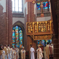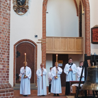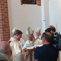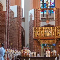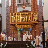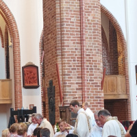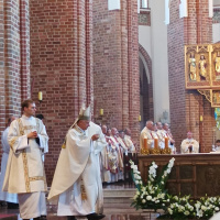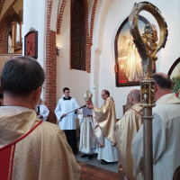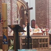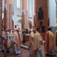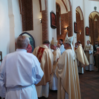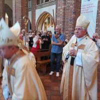Uroczystość przekazania relikwii św.Jana Pawła II naszej parafii z rąk ks. Abpa Mieczysława Mokrzyckiego w Bazylice Archikatedralnej w Szczecinie 11.07.2023